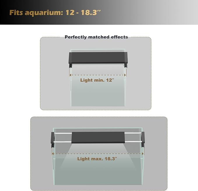 - 【Multiple Preset Spectrum】Aquarium light with three default spectral secens and two interesting scens, provide the flexible options for easy daily use and with convienient way to create the enhanced color for aquascaping.This ensures that your aquatic plants and fish get the best lighting and health.
