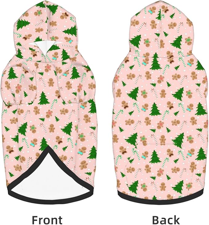 Christmas Gingerbread Men Hoodie,Christmas Cosplay Dog Clothes with Pocket and Hat Winter Clothes Sweaters Small