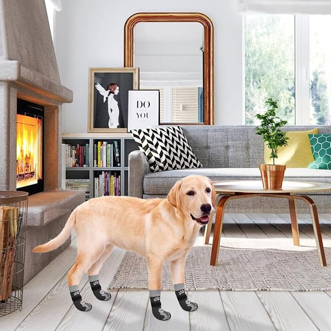- Non-Skid: For hardwood floor, if your baby has problems who was splaying and keeps slipping on your wooden floors with back legs, we suggest you would buy these the soles which have anti-slip adhesive, which can provide extra traction. Besides, wearing a non skid sock prevents dogs from licking and irritating the wound further aid in healing foot wounds.