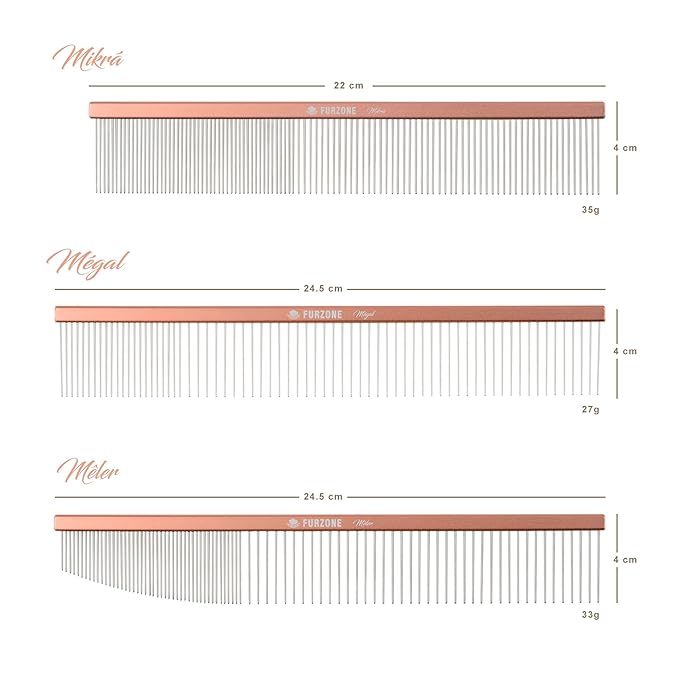 - SIMPLE COMBING: Aluminum-made 24.5 cm handle is lightweight, portable, providing you the smoothest combing process ever. It's safer and more comfortable to use for a professional groomer. Easy to carry and practical. It comes in handy when you need it, keeping your dog hair smooth and smooth on the go.