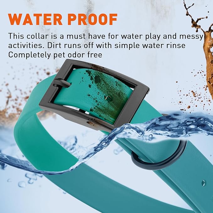 • Free Your Dog to romp in puddles and retrieve from lakes with the Dogline Biothane Waterproof Dog Collar. This water-repellent collar stays dry and odor-free, without shrinking or losing flexibility.