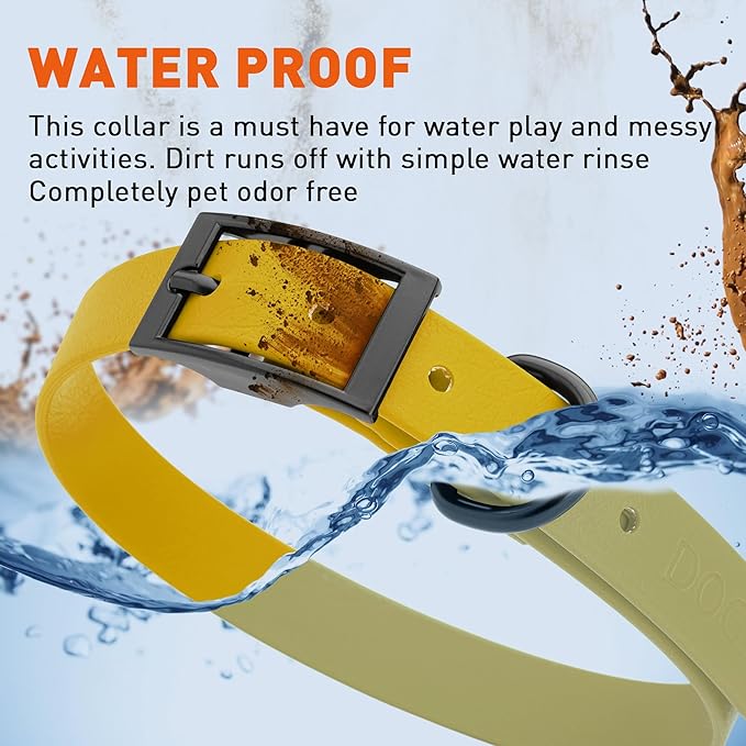 • Free Your Dog to romp in puddles and retrieve from lakes with the Dogline Biothane Waterproof Dog Collar. This water-repellent collar stays dry and odor-free, without shrinking or losing flexibility.