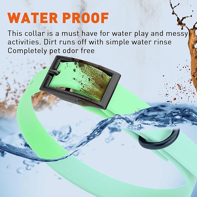 • Free Your Dog to romp in puddles and retrieve from lakes with the Dogline Biothane Waterproof Dog Collar. This water-repellent collar stays dry and odor-free, without shrinking or losing flexibility.