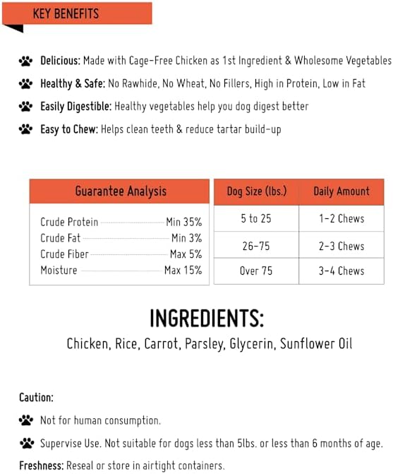 - Easy to Digest: These highly digestible Non-Rawhide chicken dog chew treats are packed with healthy vegetables and help your dogs digest better.