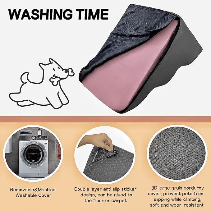 - 【Grey washable cover & safe sturdy dog steps】: Dog steps washable cover is made of comfortable materials and zippers where pet safety is a priority. Dog and cat pet stairs using 30D high-density lightweight foam waterproof, dog ramp can quickly rebound. dogs under 55 pounds to climb the stairs to the bed/sofa/couch provides an ideal mobile solution, stable and not easy to deformation, good support, easy to carry and change positions, do not worry about bump, protect the safety of pets