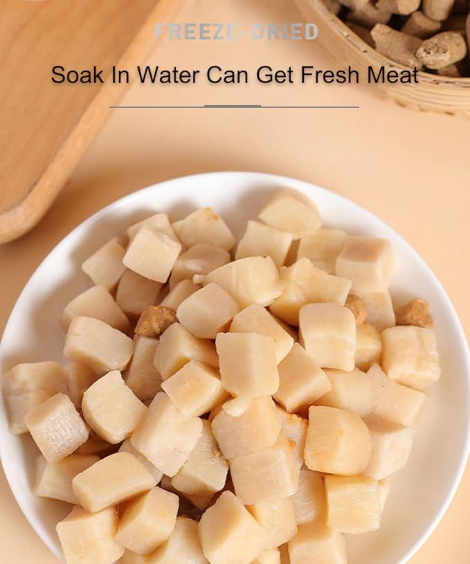 - FEEDING RECOMMENDATIONS – Protein Treats Can be Given Whole or Easily Crumbled as a Tasty Incentive at Mealtime. Moistening the Low-Calorie Treat Reactivates the Meat’S Aroma, Making This Reward a Great Way to Train Your Pets. 3 Feeding Recommendations :1. Feed Directly 2. Soak in Water, Get Fresh Meat 3. Mix with Pet Food