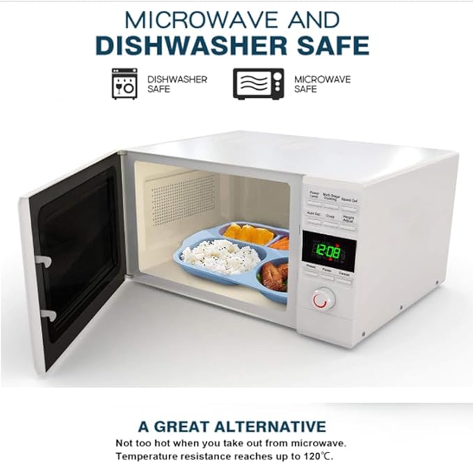 - Wheat Straw Material : PUPOPIK divided plates are made of wheat straw and food-grade PP material, a strong and durable product. Also, they are free of BPA. Non-toxic, odorless, Eco-friendly and sustainable to environment. Microwave and Dishwasher Safe.Not too hot when you take out from microwave. Temperature resistance reaches up to 120β