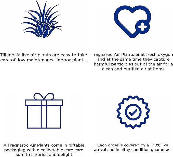- Healthy plant arrival assurance: ragnaroc is committed to delivering vibrant and thriving air plants to your doorstep. Our live air plants are packed directly from Florida, and every order comes with a promise of their safe and healthy arrival. If, for any reason, you find yourself less than satisfied with our plants, please inform us, and we will promptly arrange a full refund or send you replacement plants.