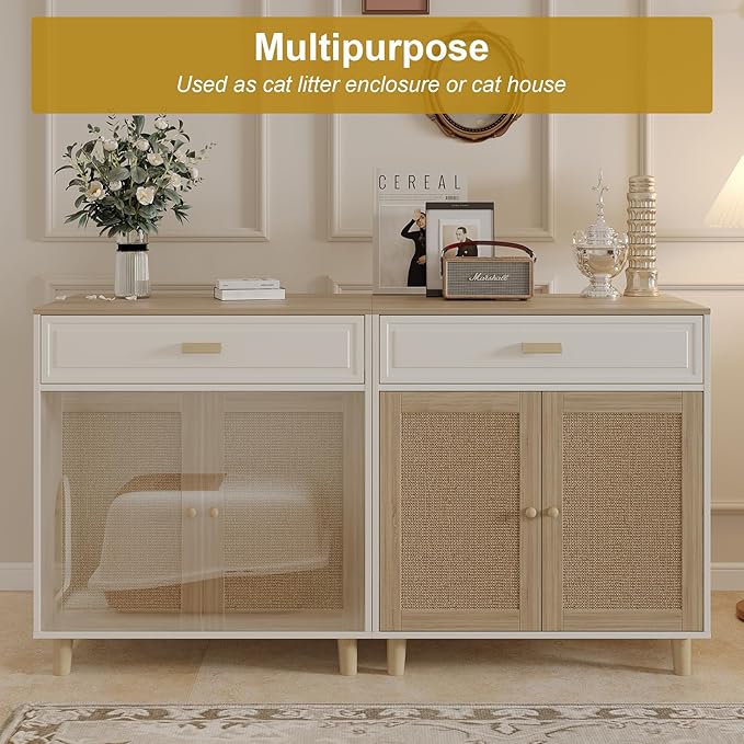 - MULTIPLE FUNCTIONS: This wooden cat litter box enclosure has multiple functions, as a cat house furniture also you can use it for hiding your cat's litter box, serving as a table, decorative box, or storage cabinet for your entryway.