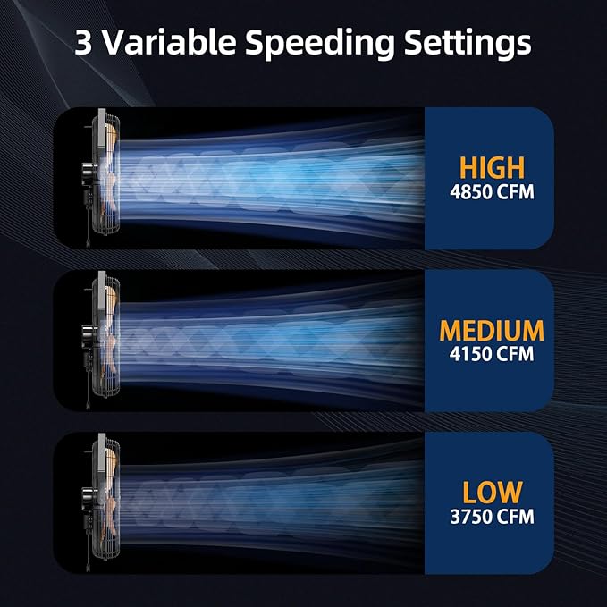 - 3 VARIABLE SPEED SETTINGS - The AIRWIZARD 20-Inch industrial wall fan has 3 speed settings, HIGH / MEDIUM / LOW - 4850 / 4150 / 3750 CFM, offers you the freedom to select from three different speed options, allowing you to optimize the airflow based on your specific needs. Whether you require a gentle breeze or a powerful gust of air, this fan has you covered.