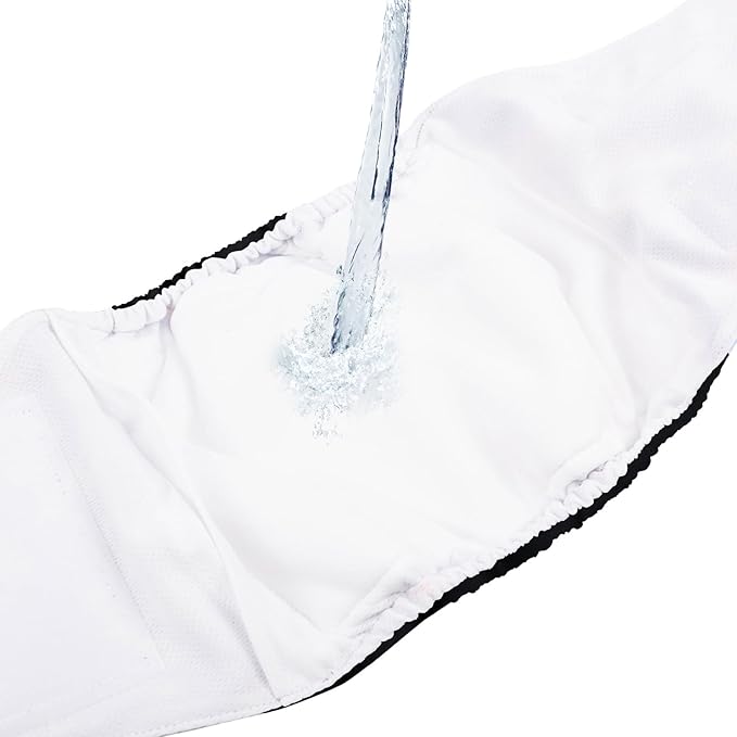 - Leak-proof with waterproof exterior shell to prevent leaking and possible damage to rugs, carpets, sofas and so on, and has easy fuzzy fastener closures for a snug fit. CuteBone male dog diapers with not only sewn-in super absorbent pads, but also a pocket where you can add extra pads for heavier wetting. Also with comfy fast-dry inner lining that your dog won’t fuss over.