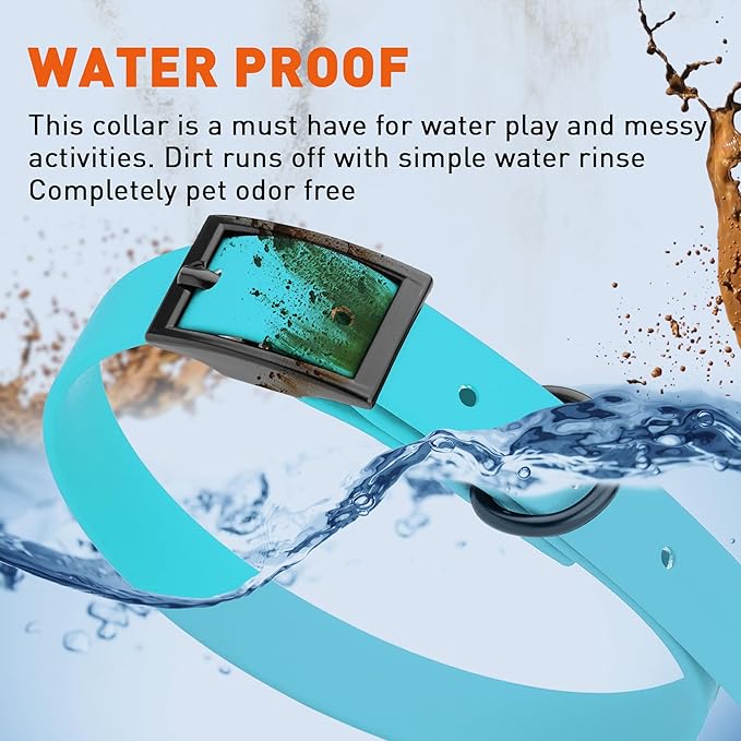• Free Your Dog to romp in puddles and retrieve from lakes with the Dogline Biothane Waterproof Dog Collar. This water-repellent collar stays dry and odor-free, without shrinking or losing flexibility.