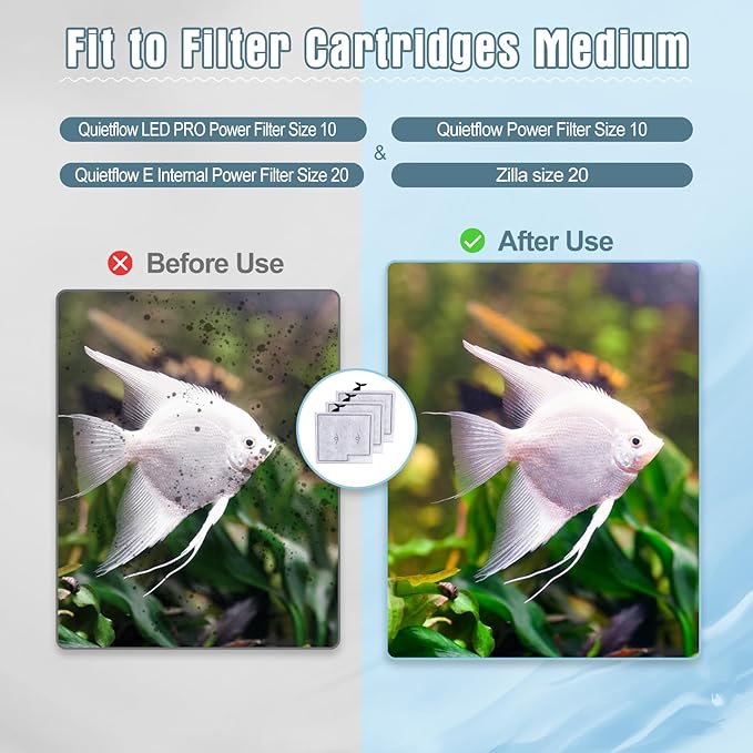 - Perfect Compatibility: Our medium filter cartridges is perfect compatible for QuietFlow LED PRO Power Filter Size 10 & QuietFlow Power Filter Size 10 & QuietFlow E Internal Power Filter Size 20 & Zilla size 20 on the market. With this aquarium filter cartridge, you can keep the water healthy and clean for your fishes all the time.