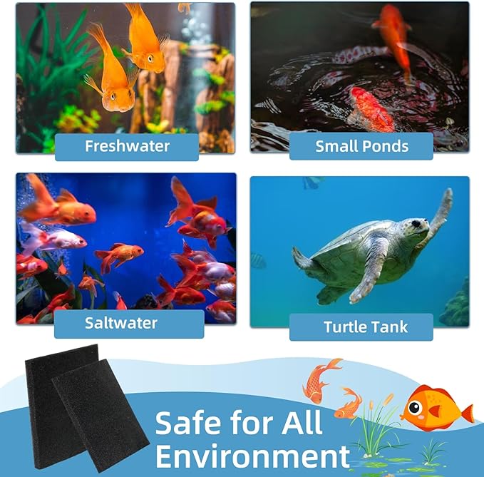 - Wide Applications: This filter pad is perfect for freshwater, reef tanks or saltwater aquariums, you can install one piece of filter foam to improve aquariums water and give fish, little turtles, or shrimps a cozy environment to live.