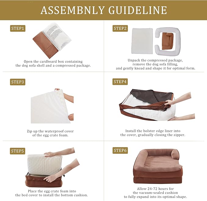 Bedfolks Orthopedic Dog Bed XXL, Waterproof Dog Sofa Bed for Giant Dogs, Egg Foam Pet Couch Bed with Removable Washable Cover and Nonslip Bottom, Brown