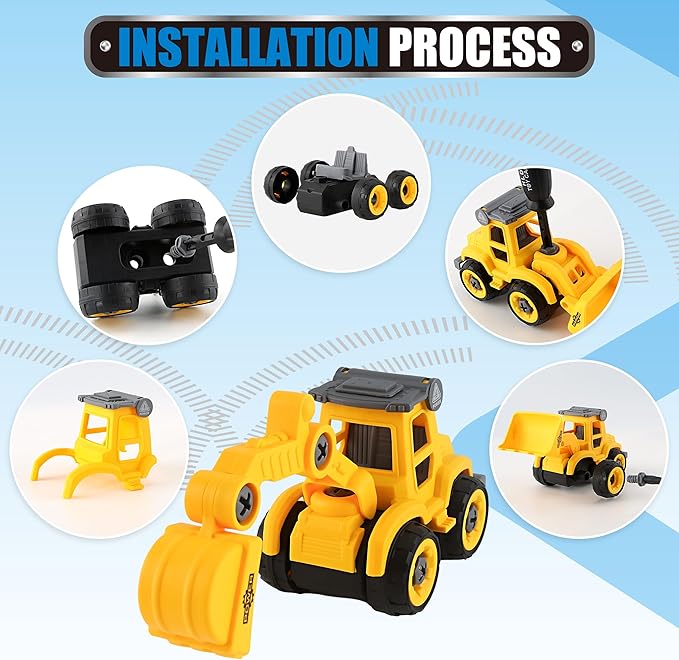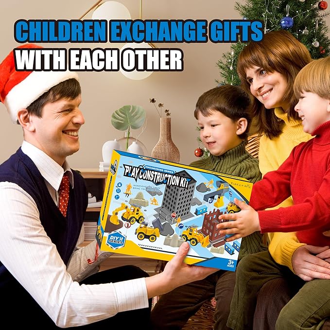 - Interactive Buildable Vehicle Fleet:Assemble 4 construction vehicles (excavator/dump truck/mixer/bulldozer) featuring movable parts and a conveyor belt. Develops logical sequencing and finger strength through hands-on mechanical play.