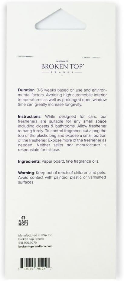- Adjustable Fragrance Intensity: Easily control the fragrance level by cutting the plastic bag and exposing a small portion of the freshener. Increase exposure as needed for a stronger scent.
