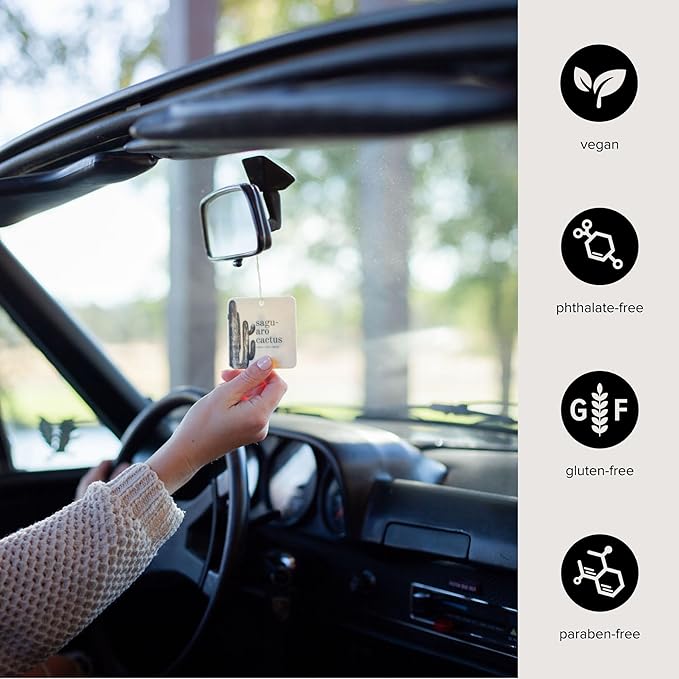 - Botanical Variety Pack: Enjoy a delightful mix of 6 car fresheners with our variety pack, featuring 2 Coconut Sandalwood, 2 Saguaro Cactus, and 2 Sea Salt Surf scents. Perfect for bringing a refreshing botanical aroma to your drive.
