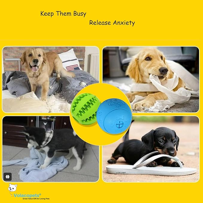 - 【Interactive Dog Toy】 This set includes treat and dental balls designed for indoor and outdoor play, providing mental stimulation and dental care. Volacopets treat-dispensing dog ball is crafted from high-quality, tough rubber that offers excellent elasticity. It's perfect for grinding and cleaning your dog's teeth, making it suitable for small to large breeds.