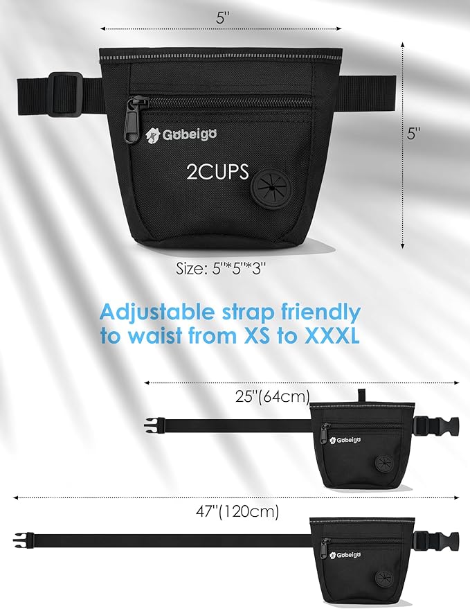 - 【Versatile wearing options】 Gobeigo dog treat bag offers two wearing modes: an adjustable waist belt (25-47 inches) catering to a wide audience, or the option to use the back metal clip independently. Simple and convenient, ensuring a comfortable fit for everyone.