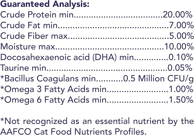 - Packed with Essential Nutrients: Cat probiotic vital ingredients such as taurine for heart and vision health, lysine to strengthen immunity, and DHA & omegas for a shiny coat and cognitive function, ensuring comprehensive nutritional support.