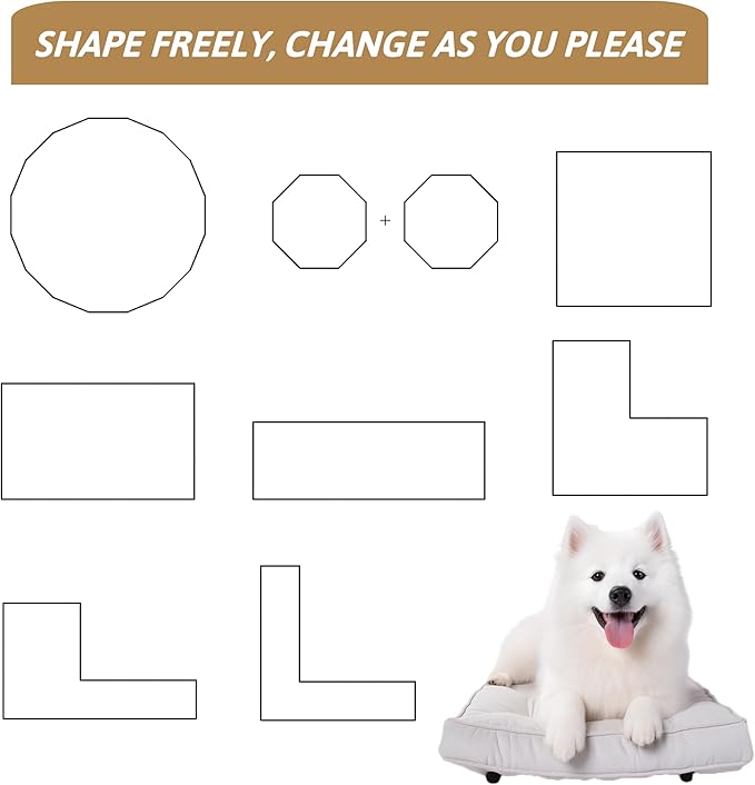 - 🐶𝗙𝗼𝗹𝗱𝗮𝗯𝗹𝗲 & 𝗩𝗲𝗿𝘀𝗮𝘁𝗶𝗹𝗲:This portable dog fence folds up quickly for easier storage and transportation than traditional models. You can easily transfer it from your home to your car, perfect for RV camping, traveling, or use in the yard. For indoor use, we recommend placing it on a dog mat or carpet to protect floors from scratches
