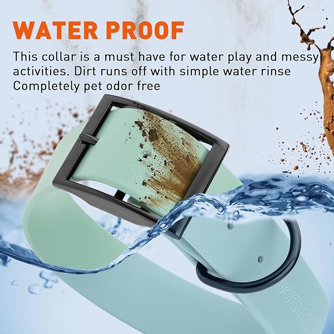 • Free Your Dog to romp in puddles and retrieve from lakes with the Dogline Biothane Waterproof Dog Collar. This water-repellent collar stays dry and odor-free, without shrinking or losing flexibility.