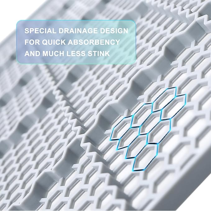 - Sturdy Grate : The plastic grate layer keeps the dog turf separated from the pee pad. The holes are well spaced so the pee goes straight through to the pee pad. The grate is a sturdy, heavy duty plastic.