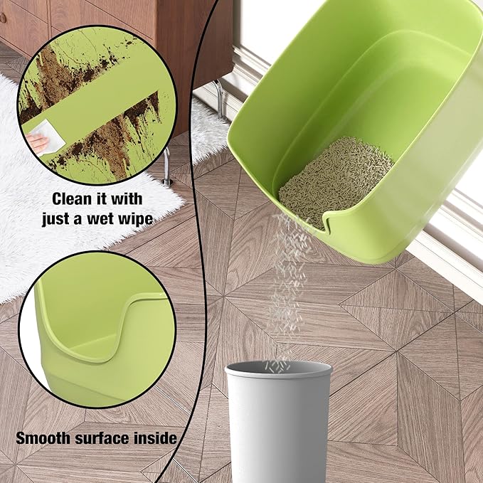 - No Gaps: One-piece molded construction requires no assembly, simple and no gaps, cat litter won't leakage or get stuck in the crevices, say goodbye to annoying cleaning problemsοΌmaking cleaning easier.