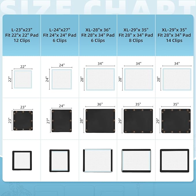 Dog Pee Pad Holder, Oxford Cloth Material, Fit 24"x24" Pad,Puppy Pad Holder, 6 Powerfu Magnetic Clips, Indoor Dog Potty, Black