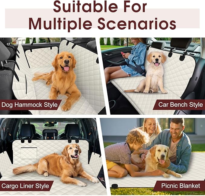 - 【Multi Functional Use】The pet car seat cover is not only designed as a dog hammock with side wings. It can also be transformed into a car bench style or a cargo liner style. When this dog hammock for cars is fully unfolded, it can become a camping mat, allowing your family, friends, and pets to enjoy picnics together. Bring this multifunctional back seat pet cover and start your journey.