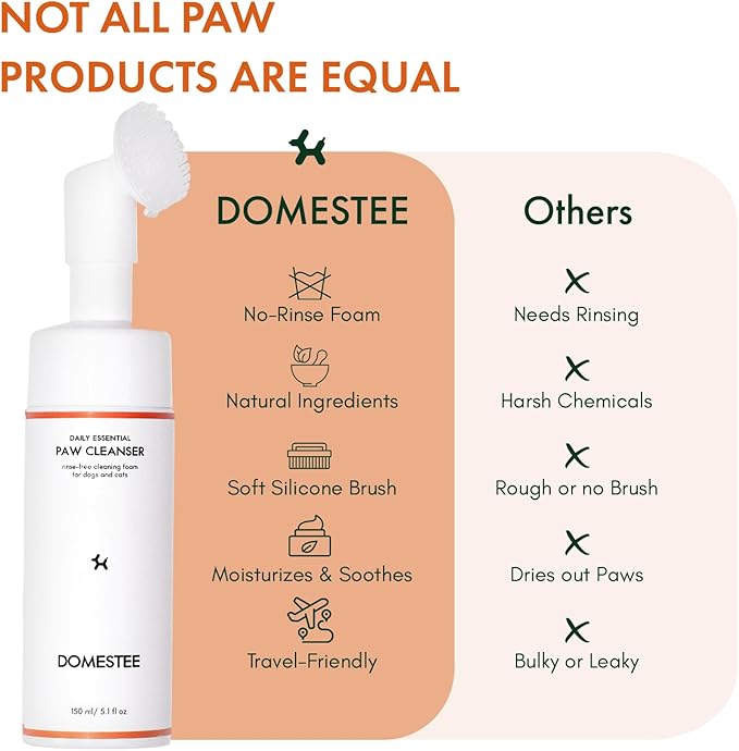 - QUICK & NO-RINSE APPLICATION: Shake the bottle dispense the foam and use the silicone brush to gently clean your petβs paws no rinsing or baths required. Wipe away dirt and repeat as needed. The reusable silicone brush is easy to clean making it a hassle-free solution for busy pet owners and a stress-free experience for pets.