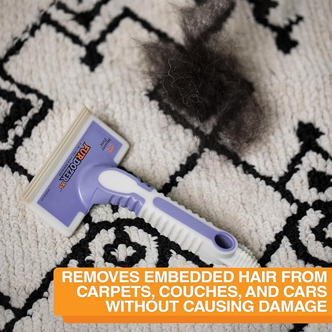 - GREAT FOR EMBEDDED HAIR - The textured main pad and serrated squeegee can get deep into carpets and couches to remove embedded hair that you didnβt even know was there. Not just for pet hair, the FurDozer will also help to collect and clean hair, lint, and other debris from your car, furniture, and more.