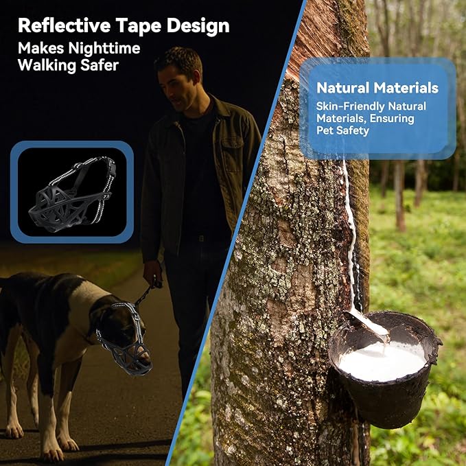 - Easy to Put on and Remove: Designed for Convenience, The Adjustable Straps on Our Dog Muzzle Allow for Quick and Secure Fitting. The Ergonomic Design Ensures a Hassle-Free Experience for Both You and Your Dog, Making it Ideal for Daily Walks, Training Sessions, Or Visits to the Vet. Reflective Strap Design Provides Night Travel Safety