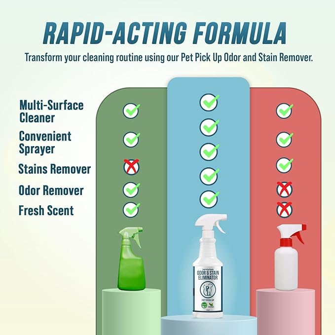 - Pet Odor Eliminator Spray for Multiple Surfaces – Effective on carpets, rugs, upholstery, crates, litter boxes, and turf—your one bottle for home and pet spaces.