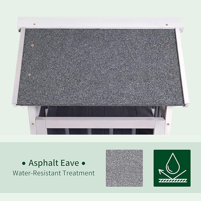 - Thoughtful Features: PVC door curtain, asphalt roof, and elevated bottom floor protect against cold wind and rain, ensuring a cozy and dry environment. The outdoor cat shelter includes a climbable and playful jumping platform.