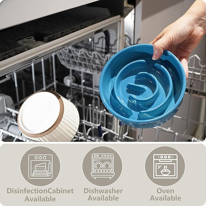 - 【Safe Sturdy Ceramic Material】Enjoy food safely and healthily — Plastic dog bowls are often bitten by dogs, resulting in the plastic being ingested by dogs, which is harmful to dogs' health. We prioritize your pet's health by using high-quality ceramic for our slow feeder dog bowls.