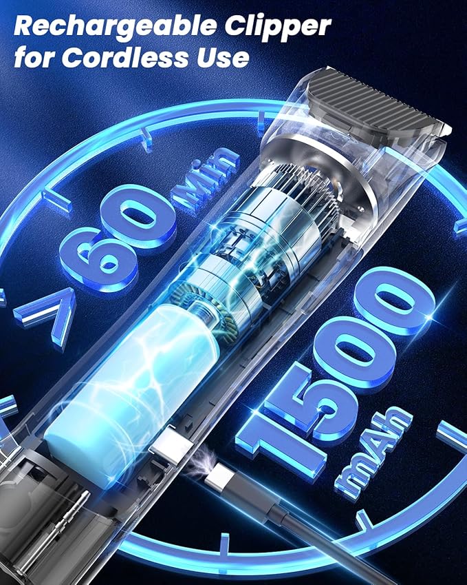 - Portable Wireless Dog Clipper-Unleashing Ultimate Grooming Flexibility: The Buenkee innovative dog grooming clipper features a detachable design with a built-in 1500mAh rechargeable battery, enabling independent use. On a single charge of over 60 minutes' continuous use, it is sufficient to groom large dog breeds or multiple pets in a busy household. This extended battery life gives you the freedom to move unrestrictedly, allowing you to effortlessly follow and groom your active pet wherever they may be, ensuring a convenient and stress-free grooming experience on the go.