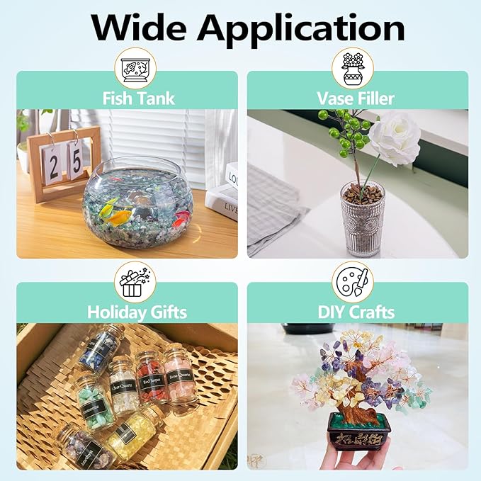 - Wide Application: Small crushed stones are not only suitable for home decoration, but can also be given as a birthday or Christmas gift to family and friends. Perfect for decorating aquariums, succulent plants, vases and DIY handcraft projects