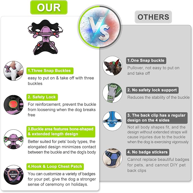 - 【 No Pull & Choke-Free Design 】Designed with your dog's comfort in mind, our No Pull Dog Harness is structured to distribute pressure evenly throughout your dog's body, preventing choking and discomfort during walks. This feature offers a more humane and safe way for you to control your dog.
