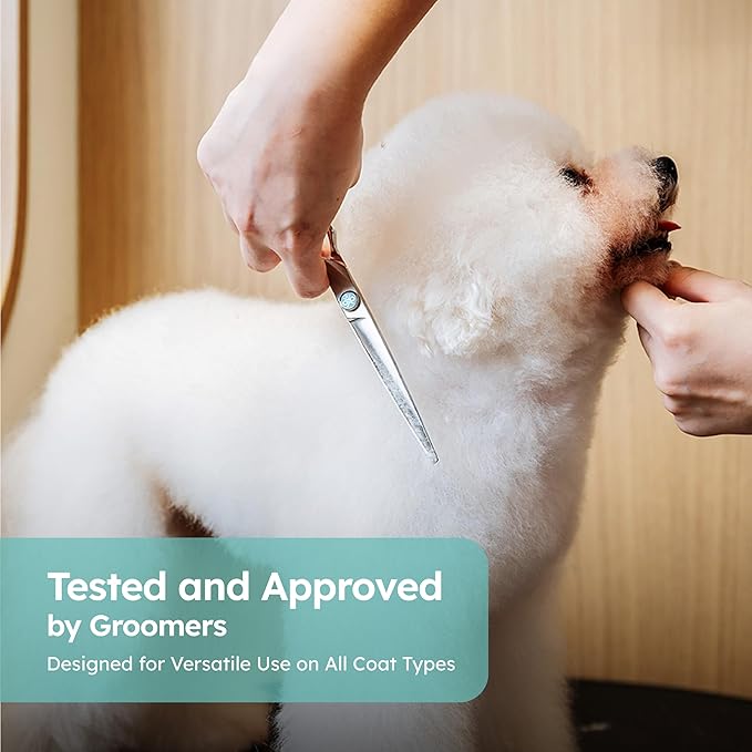 7" Curved Dog Grooming Scissors – Handcrafted, Ergonomic, VG10 Stainless Steel for Sharper, Tougher, Better Edge Retention, Lightweight Shears for Trimming Face and Paws.