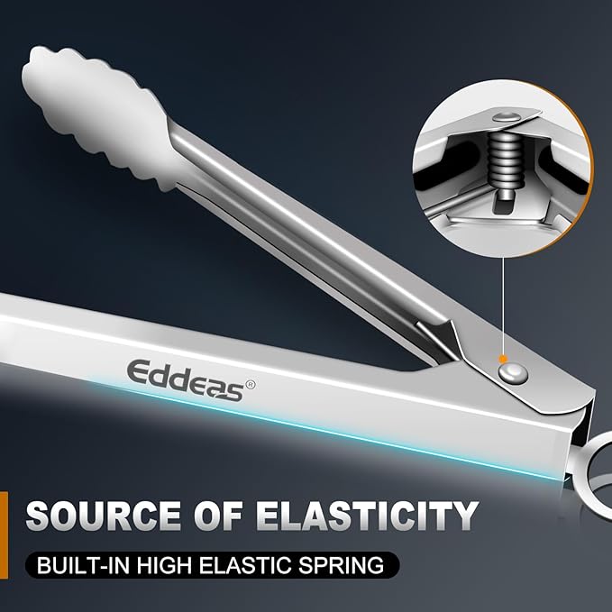 - FOOD GRADE STAINLESS STEEL - Eddeas kitchen tongs are made food-grade all stainless steel in one piece for enhanced robustness and heat resistance, rust resistance and easy handling. Tongs for cooking the overall light weight and ergonomic features are maintained.
