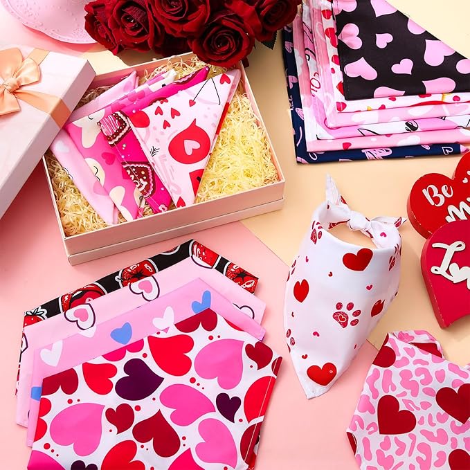 - Exquisite Design: our Valentine's Day dog scarves are carefully designed without repeated patterns and styles, using a variety of exquisite love patterns, dog paw patterns, lips patterns and other elements, with bright colors, eye catching and fashionable, very suitable for spring and summer seasons, making your pet look more lovely and stand out