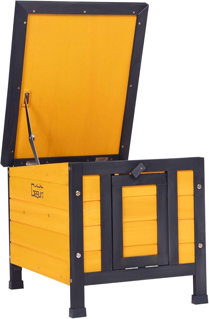 GEGURI Outdoor Cat House Weatherproof, Rabbit Hutch & Indoor Bunny Cage, Wooden Shelter for Feral Cats, Rabbits, Chickens & Small Animals
