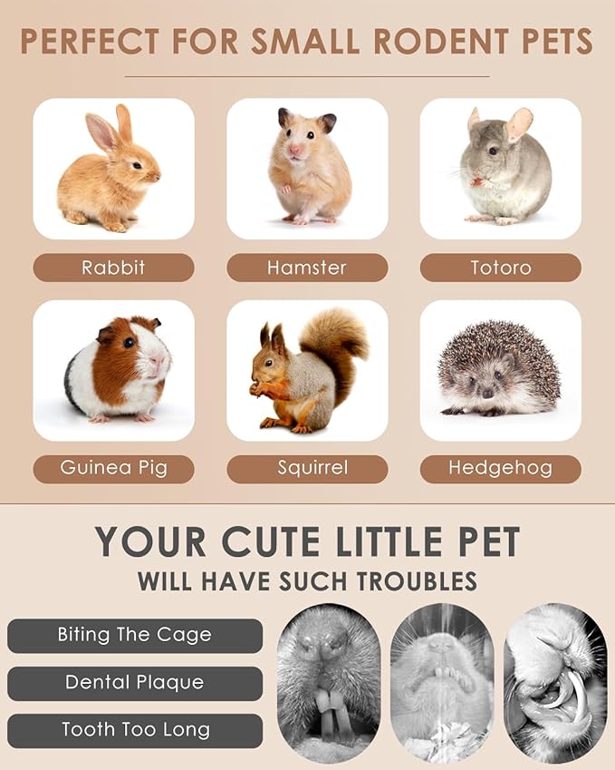 - Promote Dental Health: Guinea pigs chews not only promotes dental and oral health, but also trims long teeth (such as the incisors of rabbits and hamsters) to prevent the pain of overgrowth. It is a molar toy recommended by veterinarians for rodents