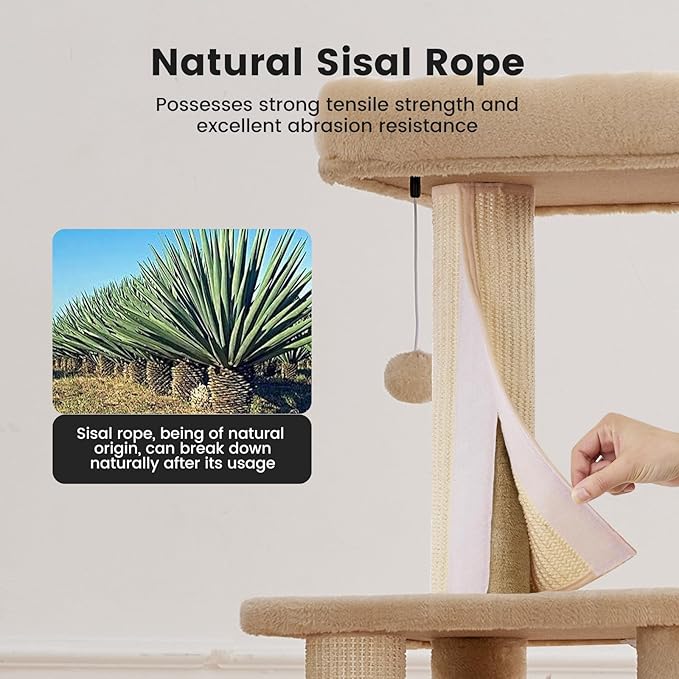 - [Safe & Durable Materials | Pet-Approved] 🌿Eco-Friendly MDF Board: High-density, warp-resistant, for long-lasting safety. ✋ Natural Sisal Wrapped Posts: Protects furniture while satisfying cats' scratching instincts.