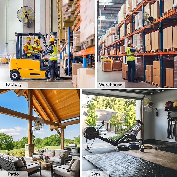 - Much Airflow Movement: Thanks to innovative technology, CCGIRU’s heavy-duty industrial wall mount fan indoor provides circulating cooling, great for cooling large spaces such as industrial, commercial, garages, warehouses, workshops, barns, and covered patios