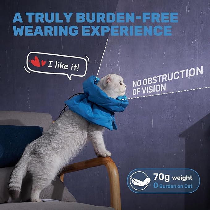 • 【More than Protection】: Leotrag’s One-Piece design is more acceptable and secure for cats than traditional collars. Leotrag cat cone prevent your pets from licking, chewing and scratching their surgical site or injured area of the body, and help them quickly recover from surgery or injury. Please confirm the position of your lovely pet's wound before placing the order. NOTE: YOUR PETS CAN STILL LICK THEIR FRONT AND BACK PAWS WITH WEARING THIS CONE. ONLY USEFUL FOR WOUNDS ON THE UPPER PART THEIR BODY.