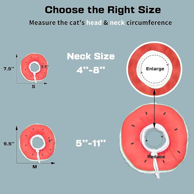 - Suit for all Size of Cats: We offer 2 sizes of cat cone, and the middle of each cone is adjustable, ensuring a definite fit for your cat. Size M fits (9.5 "x9.5 "x2.2ββ) cats with a neck circumference of 5-11 inches