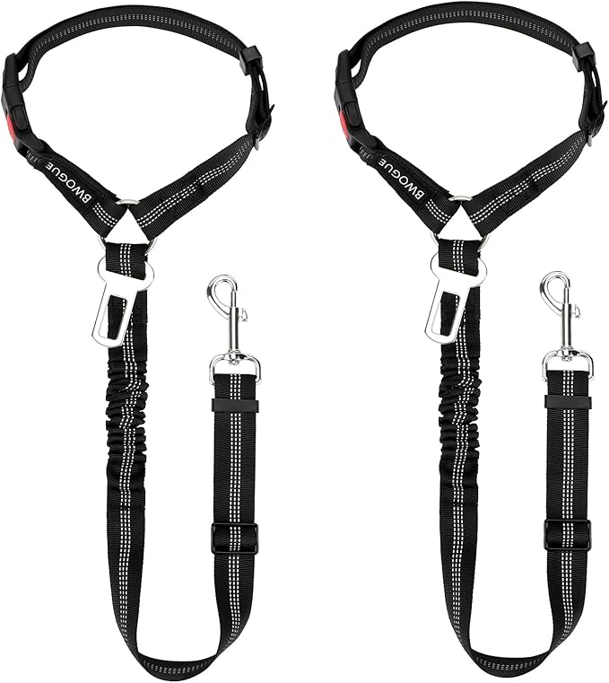 BWOGUE 2 Piece Dog Seat Belt for Car with Elastic Bungee Buffer Safety Seatbelt Car Headrest Restraint Wear Adjustable Metal Buckle Harness in Vehicle Travel for Pet